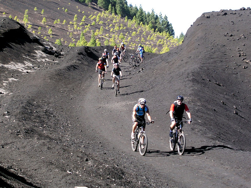 Excursie met de mountainbike door het gebied van de laatste vulkaan uitbarsting van het eiland.