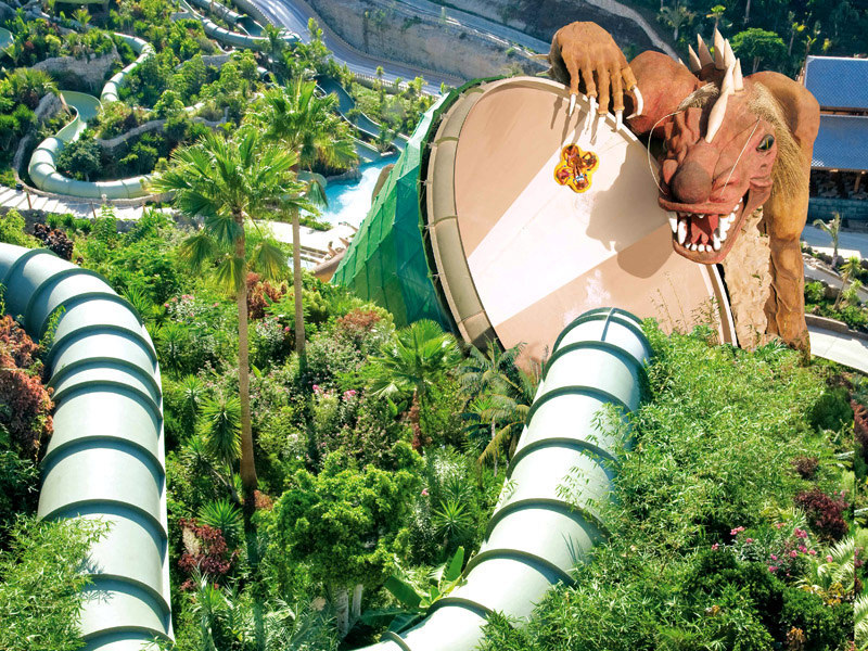 Glijbanen, zwembaden en vele andere attracties, evenals de natuurlijke tuinen.